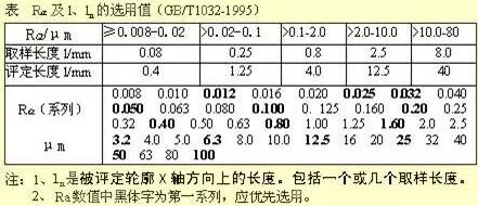 在取樣長(zhǎng)度內(nèi),輪廓偏距絕對(duì)值的算術(shù)平均值。Ra的數(shù)值及取樣長(zhǎng)度l見下圖。