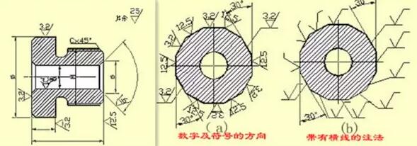 2) 表面粗糙度的標(biāo)注表面粗糙度中數(shù)字及符號(hào)的方法