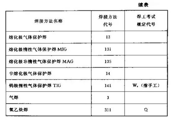 在焊接結(jié)構(gòu)圖樣上,焊接方法可按國(guó)家標(biāo)準(zhǔn)GB5185-85的規(guī)定用阿拉伯效字表示,標(biāo)注在指引線的尾部。常用焊接方法代號(hào)見(jiàn)下圖所示。如果是組合焊接方法,可用“/”分開(kāi),左側(cè)表示正面(或蓋面)的焊接方法,右側(cè)表示背面(或打底)焊接方法。例如V形焊縫先采用鎢極氫弧焊打底,后用手工電弧焊蓋面,則表示為141/111。